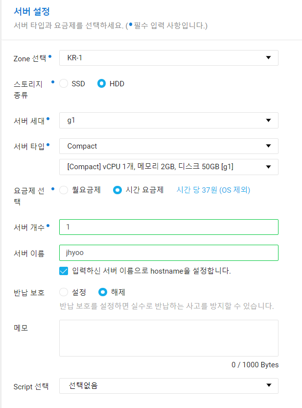위 캡쳐에서는 Script 선택을 안했지만 아래 http.sh 스크립트를 선택해줍니다.