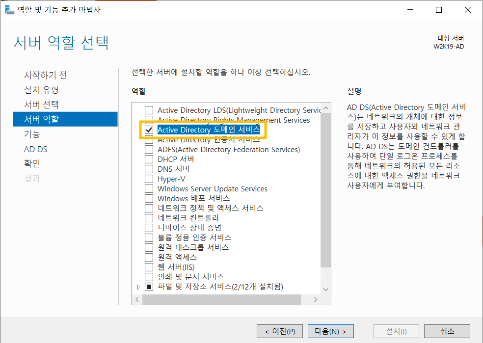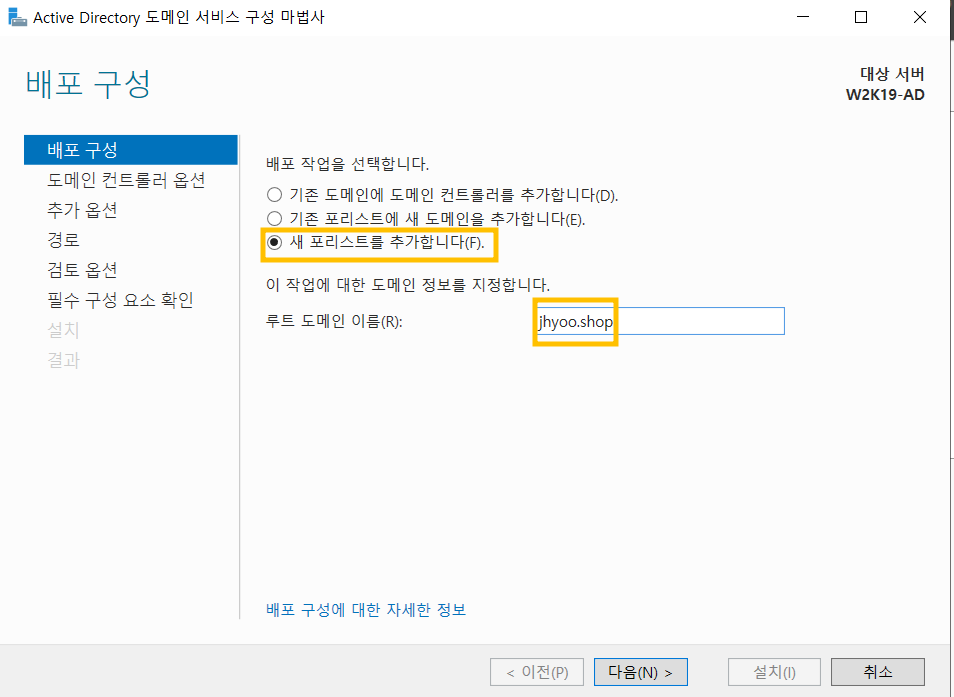 Forest Root DC 생성 (W2K19-AD)