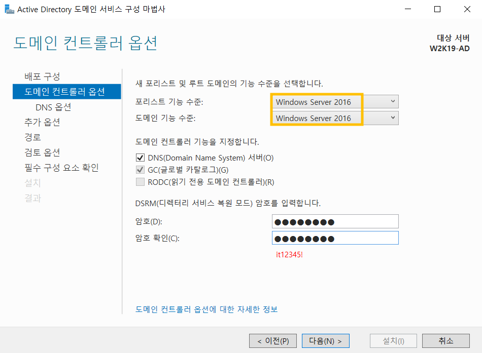 도메인의 기능수준은 포리스트의 수준보다 같거나 높아야 합니다.