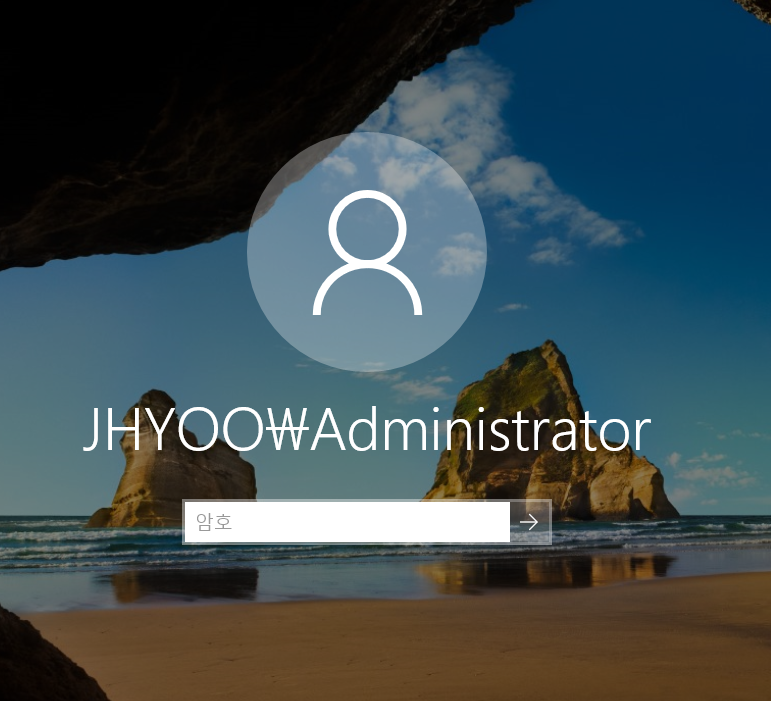 자격증명 창이 나오면 jhyoo\administrator 와 아까 설정한 비밀번호를 입력해줍니다.