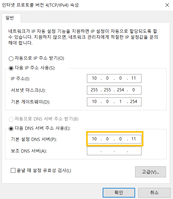 IPV4와 IPV6의 DNS를 위와같이 바꿔줍니다.