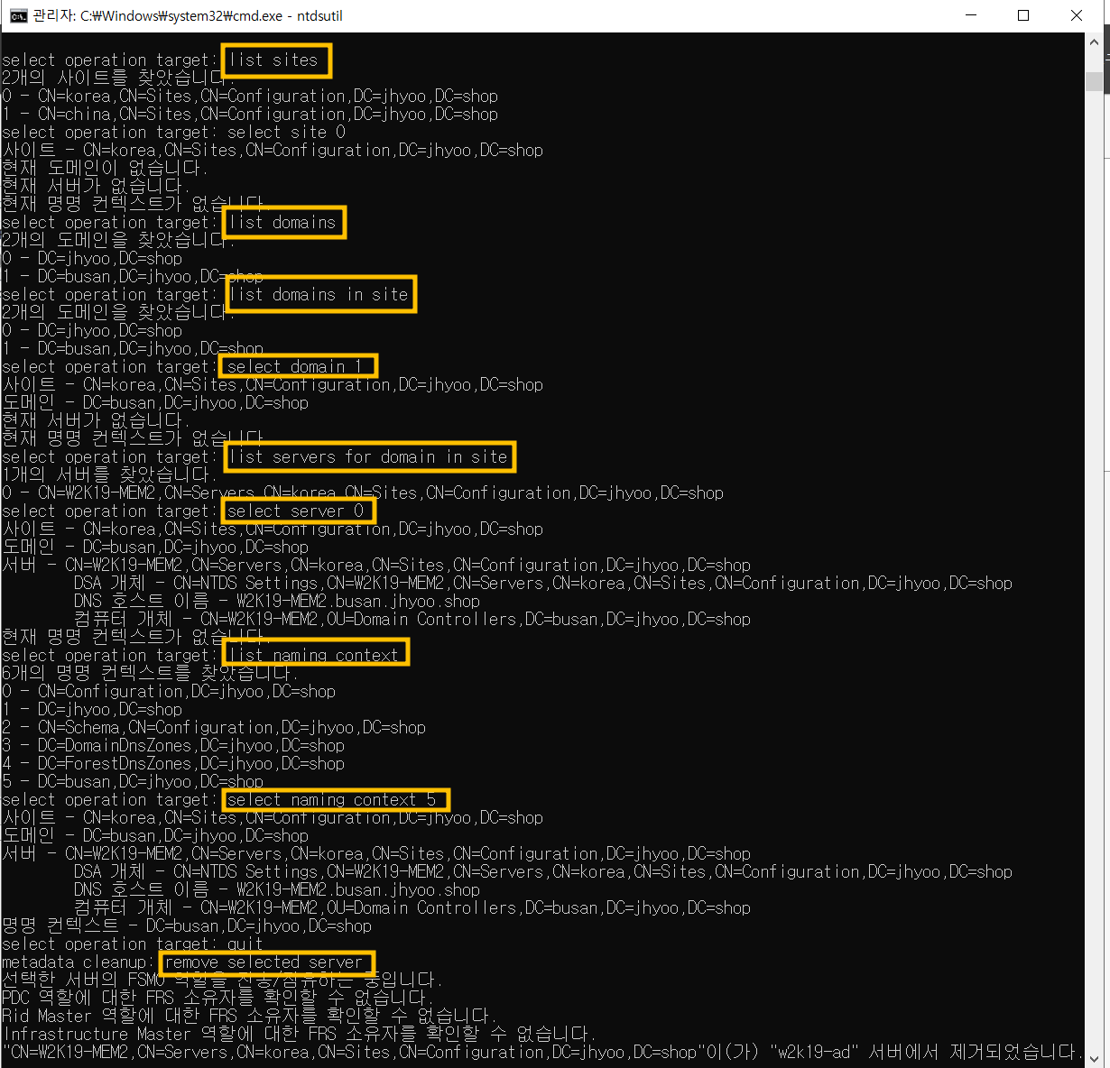 AD 삭제시 강제로 제거해서 메타데이터들이 제대로 사라지지않은 경우 일일이 삭제를 해줘야합니다
