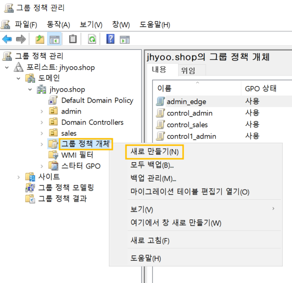 그룹정책개체 -> 새로만들기