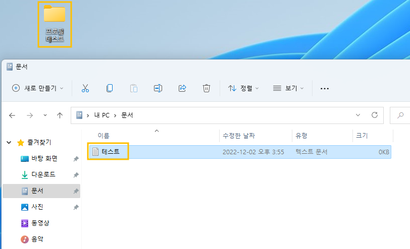 w11 클라이언트 서버에서 b로 로그인 후 테스트용으로 폴더 하나와 문서 하나를 생성해줍니다.