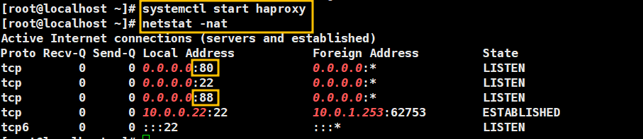 haproxy.cfg 파일 수정후 haproxy를 시작해주고 netstat 명령어로 포트가 열렸는지 확인해봅니다.