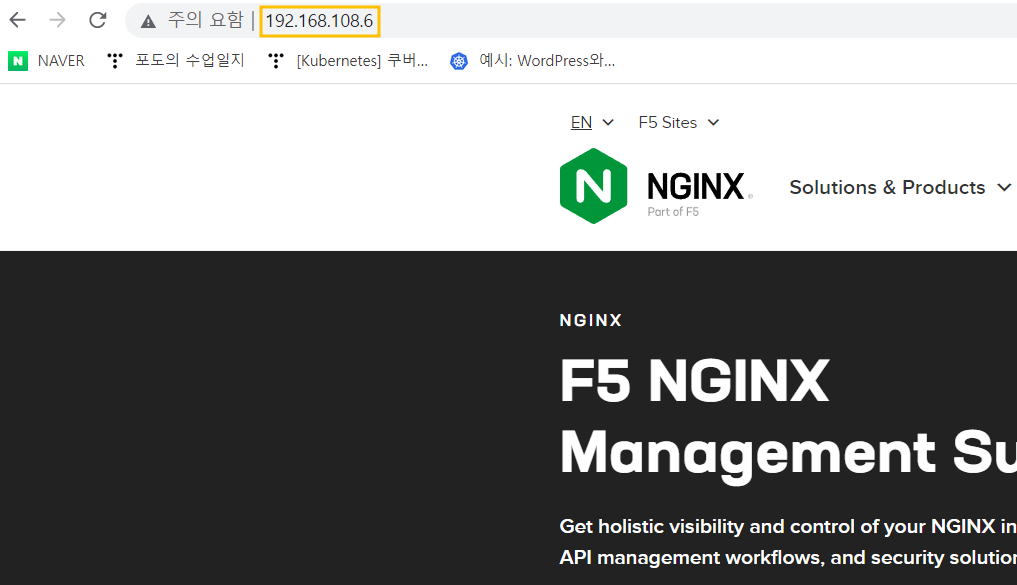 node3의 주소로 접속해보면 nginx 공식홈페이지의 첫페이지가 나오는 것을 확인할 수 있습니다.