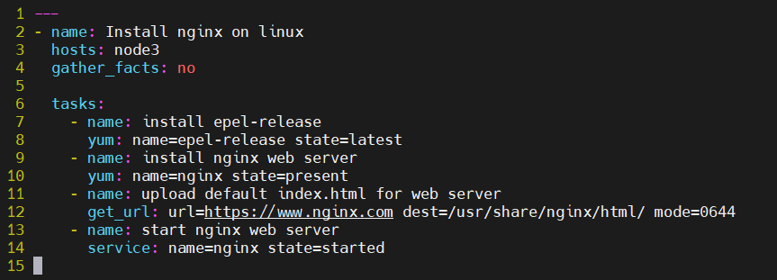 1: 플레이북의 처음은 항상 --- 으로 시작하여 야물 파일임을 명시합니다